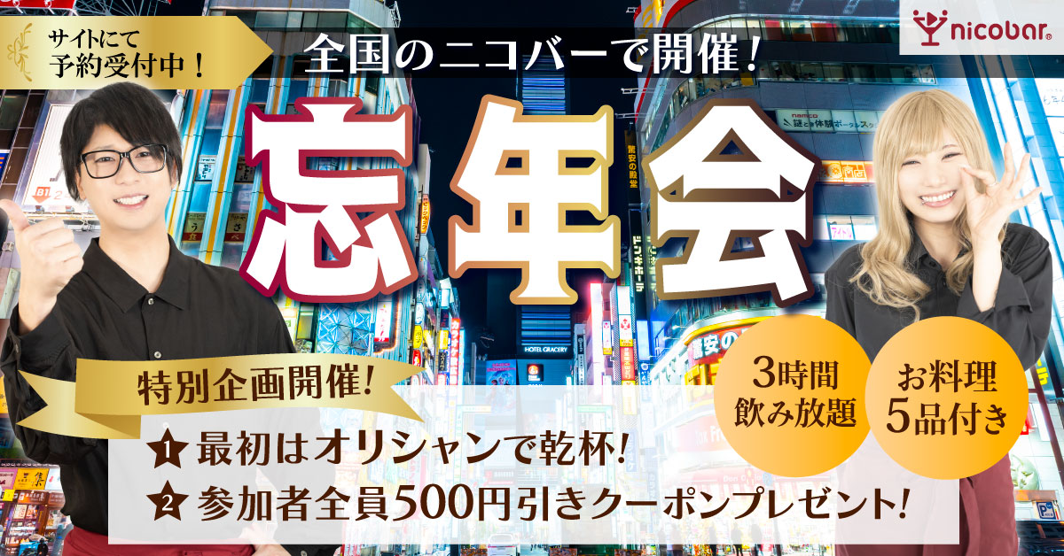 お客様ご自身でお友達と忘年会を開催したい方は是非ニコバーをご利用ください!