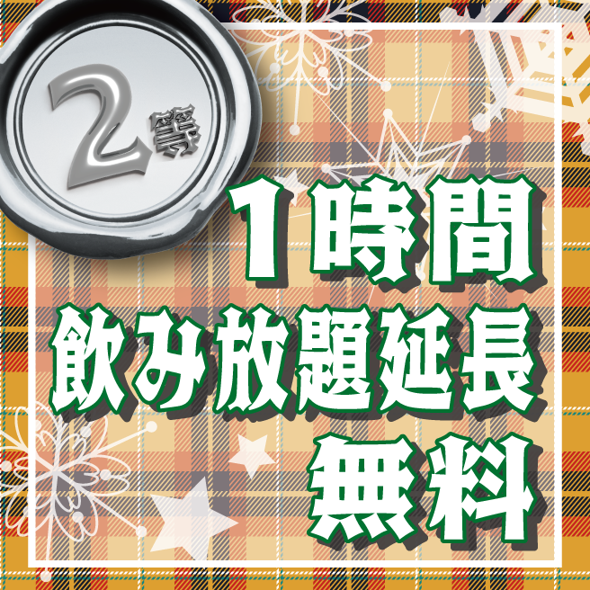 ・2時間分の飲み放題が無料となります。お通し代や2時間以降の延長料金、ショットドリンクやスタッフドリンク等の飲み放題以外の料金は別途ご請求させていただきます。