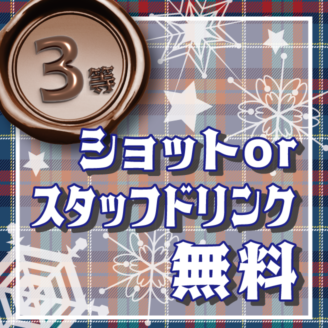 ・お客様がご注文されたショット、またはスタッフドリンクの1杯分の料金が無料となります。2杯目からは対象外となります。